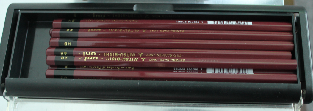 三菱鉛筆常用的為6B-6H共14支 依次為6B 5B 4B 3B 2B B HB F H 2H 3H 4H 5H 6H