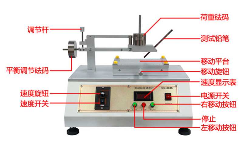這個(gè)是電動(dòng)的了,叫電動(dòng)鉛筆硬度計(jì)。這個(gè)往實(shí)驗(yàn)室一擺,就顯得高大上了。通過按鈕就控制平臺的自動(dòng)移動(dòng)了,移動(dòng)速度也可以任意選擇。這個(gè)樣品平臺大小,移動(dòng)平穩(wěn)度,鉛筆的壓力,移動(dòng)速度,測試角度等都要嚴(yán)謹(jǐn)多了。