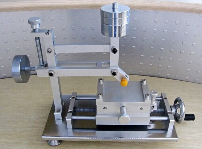 這個(gè)叫手搖鉛筆硬度計(jì),可以通過手搖來移動(dòng)平臺,這樣速度更好控制了,還有接觸角也會(huì)更好調(diào)整