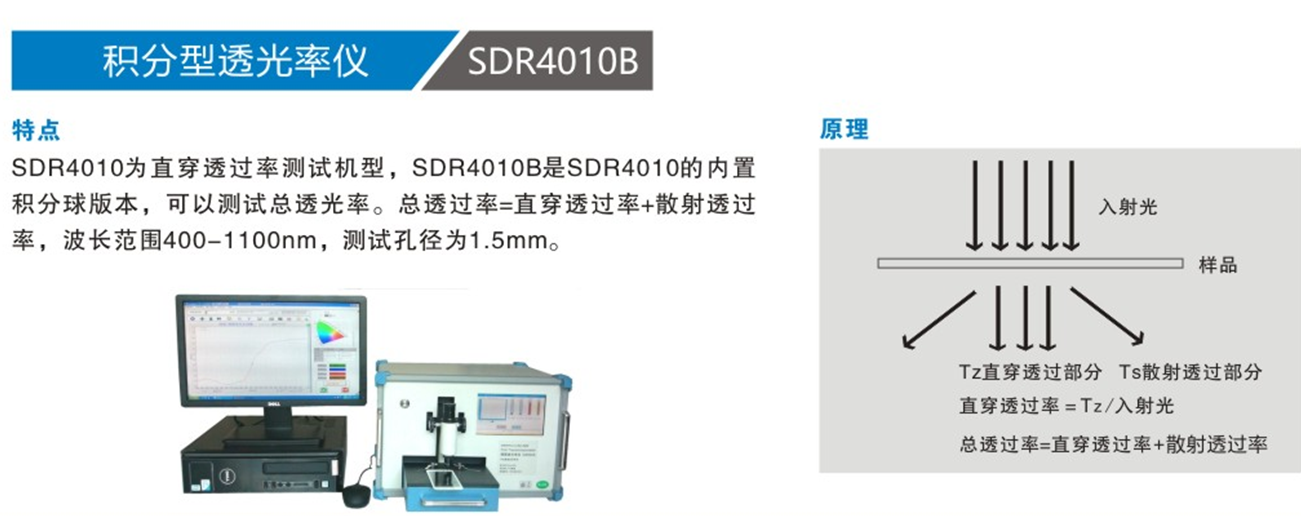 一束直線平行的光穿過被測物體后,可以全部或者部分仍保持直線前進方向,直穿透光為(1)直線透過Tz;另外一部分被材料改變方向,變?yōu)樯⑸涔猓涔猓?,?2)散射透過Ts;