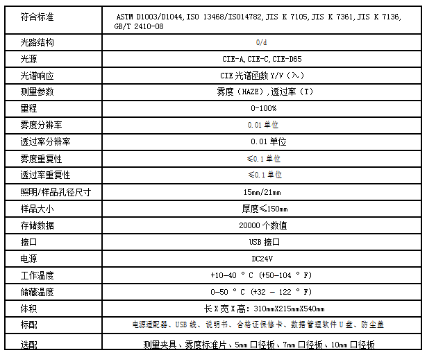 四、霧度透光率綜合儀技術(shù)參數(shù)