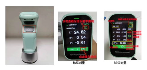 6、重復(fù)第3、4點可以重復(fù)檢測其他被檢物品與第3點標準樣品的顏色差異。