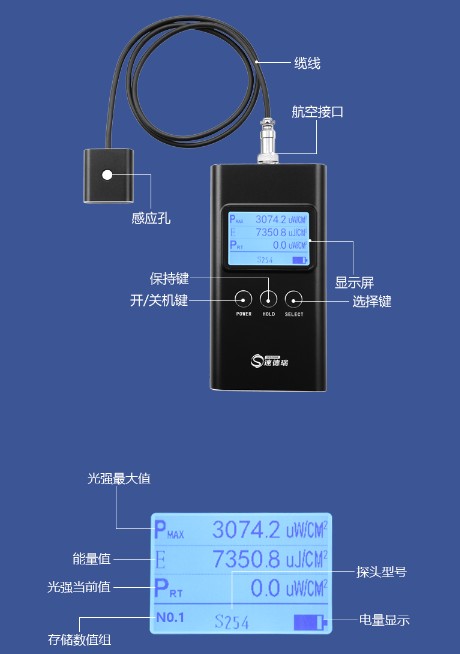 ③、紫外輻照計SDR254波長范圍(230nm-280nm),中心波長λ:254nm。