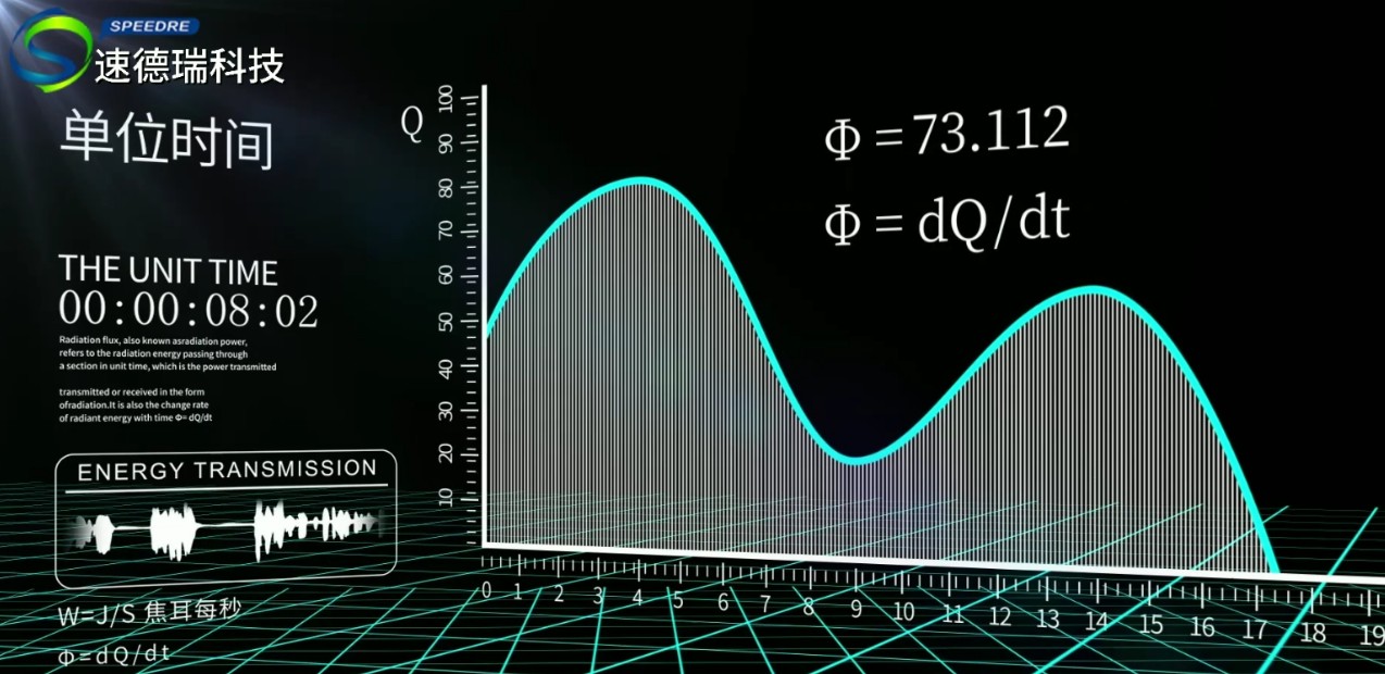 將電磁波比作水流,那能量就是匯聚到玻璃缸中水的總和。輻射通量又稱輻射功率,指單位時間內(nèi)通過某一截面的輻射能,單位用W(瓦)表示,即1W=J/S。