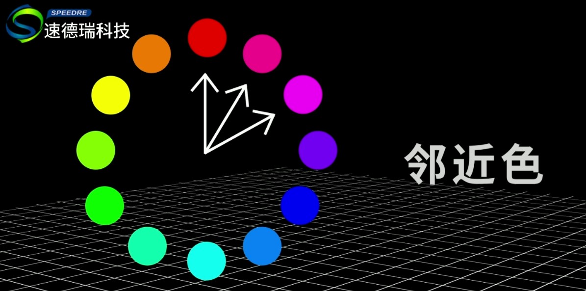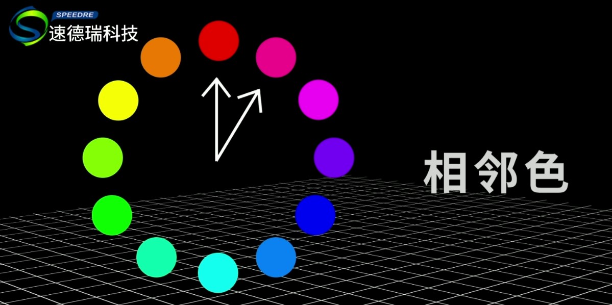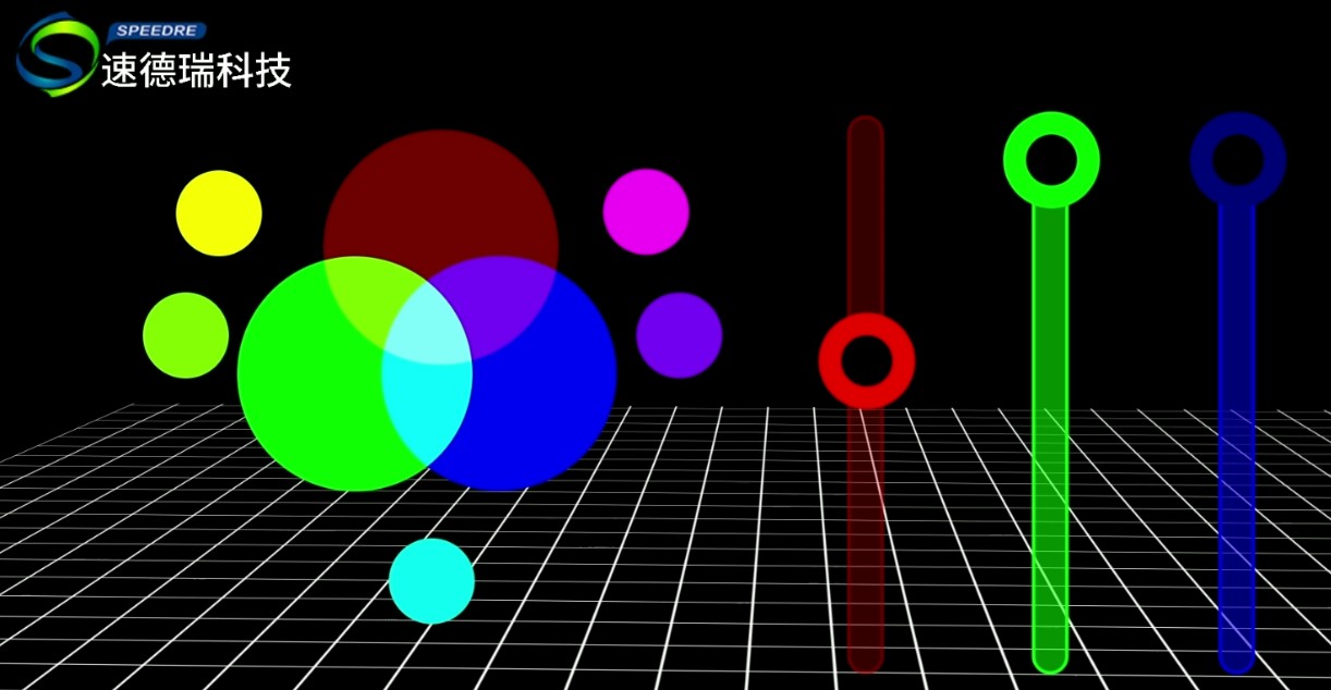 在此基礎(chǔ)上,我們?cè)俜謩e調(diào)節(jié)三原色的亮度,降低一半紅色的亮度,就會(huì)得到黃綠和藍(lán)紫;