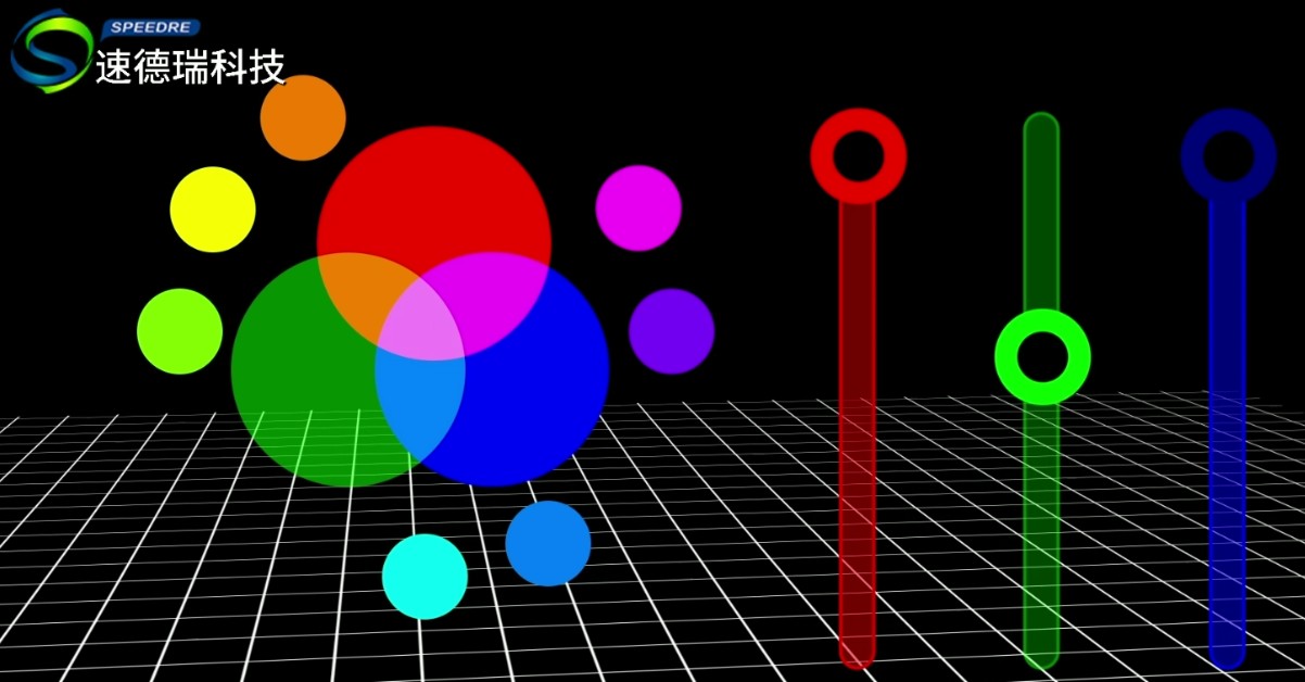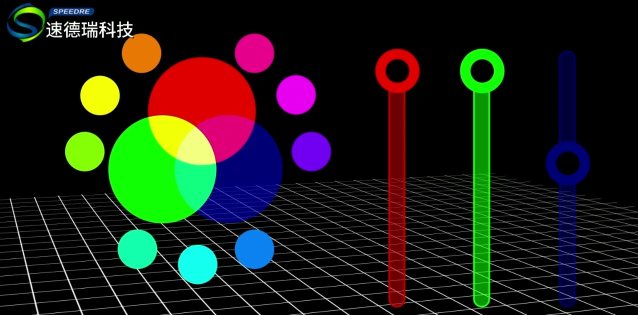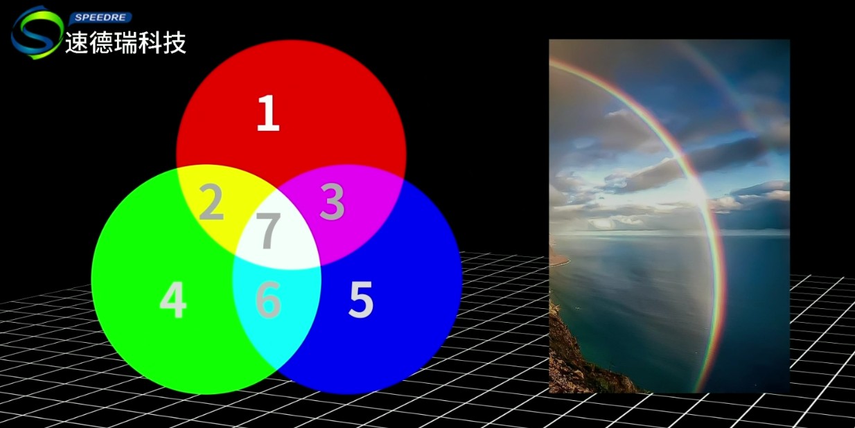 將三原色疊加在一起,便能得到七種顏色,這便是彩虹的顏色。