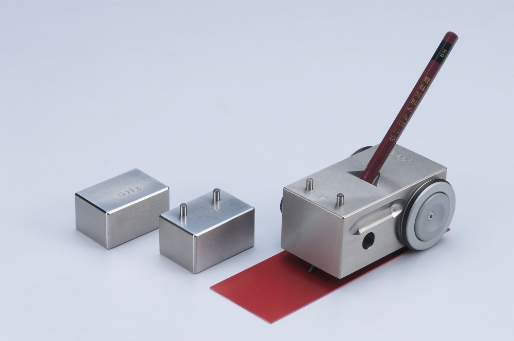 不同硬度等級的鉛筆以水平成45度角在漆膜表面移動。鉛筆的硬度由兩個硬度等級確定,較軟的一種產生一個寫痕跡,另一個硬度等級將在涂層上產生一明顯的劃痕。