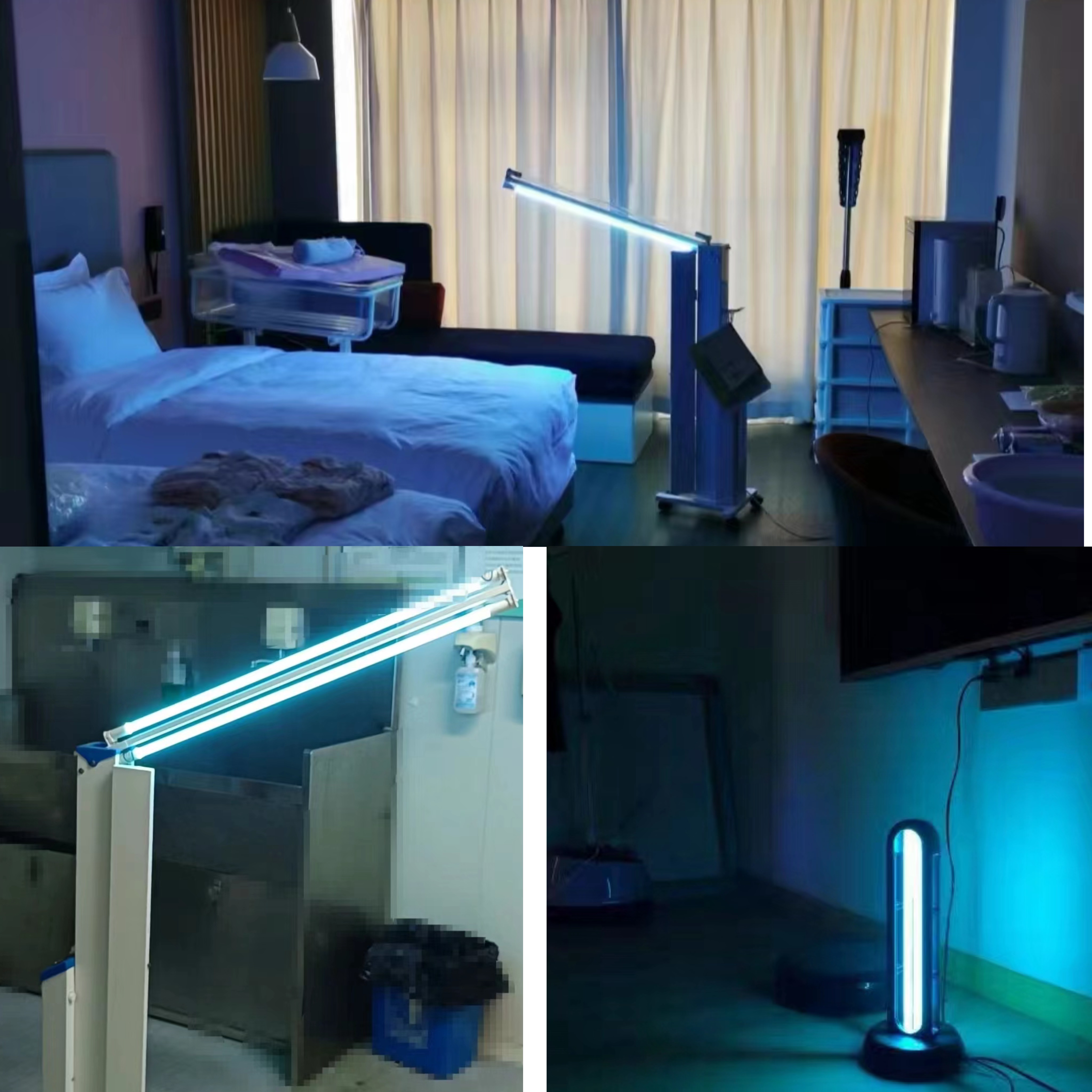 波長范圍分為A、B、C三個波段。其中,UV-C波段(290-100nm)的紫外線具有殺菌能力,稱為消毒紫外線。紫外線殺菌燈直接利用紫外線(中心波長為253.7nm)達到消毒目的的特種電光源。紫外線消毒燈是一種低壓汞燈,是利用較低壓(<10-2Pa)汞蒸汽被激化而發(fā)出的紫外線進行照射消毒的燈。紫外線消毒燈的主要發(fā)光譜線條:253.7nm波長和185nm波長,峰值波長為253.7nm。這兩種波長的紫外線都能起到很好的殺菌作用,其中前者能直接作用于生物細(xì)胞遺傳物質(zhì)即DNA,使DNA遭到破壞而導(dǎo)致細(xì)菌亡,并具有分解臭氧功能;后者則能通過與空氣中的氧氣作用,產(chǎn)生有強氧化作用的臭氧,從而殺滅細(xì)菌。像這種殺菌燈一般醫(yī)院、幼兒園、酒店等等用的比較多。